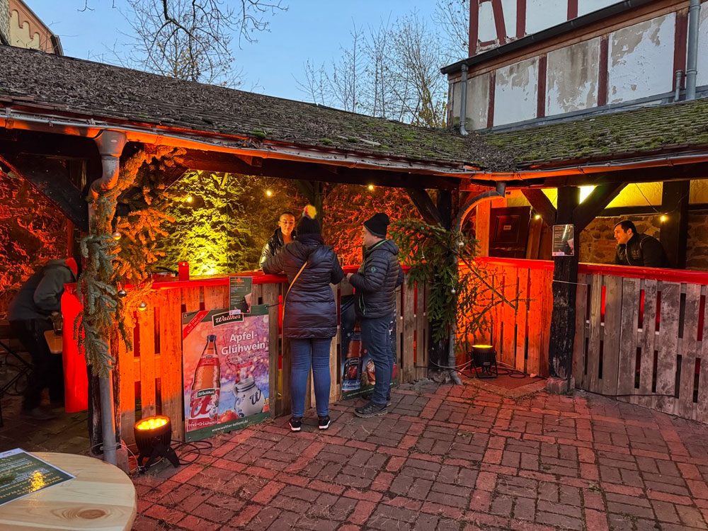 Ihr findet uns im Innenhof des alten Rathauses (Obsthaus Beller) – in unserer warmen, liebevoll gestalteten Weihnachtslounge.